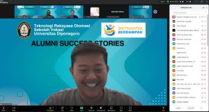 Semarang (3/11/2025) – Program Studi Teknologi Rekayasa Otomasi (TRO) Sekolah Vokasi Universitas Diponegoro kembali menyelenggarakan kegiatan “Alumni Success Stories” secara daring melalui Zoom Meeting pada Senin, 3 November 2025, pukul 10.00 – 12.00 WIB.